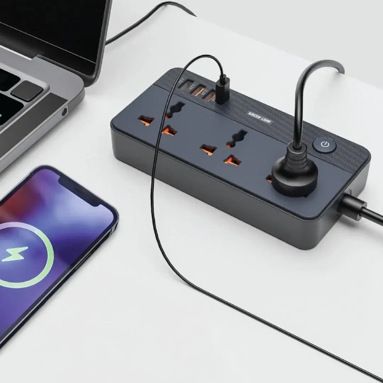 Green Power Strip Model GS-200, 2500 Watt Capacity, 3 Ports, 2 Meter Cable Length
