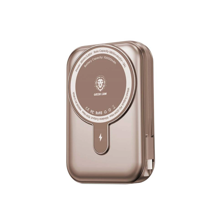 پاوربانک مگ سیف گرین موناکو گریپ 10000mAh ساعت با کابل تایپ سی سرخود دارای ابعاد 100.3x67.3x24.5 میلی متر و وزن فقط 190 گرم در دو رنگ مشکی با کد GNMGP10KPBBK و تیتانیوم با کد GNMGP10KPBTI تولید شده است که آن را به شارژر همراهی خوش دست و قابل حمل تبدیل کرده است. ظرفیت واقعی باتری این کالا 5800mAh می باشد و جنس این محصول از PC و ABC است و با این پاوربانک سبک وزن می توان هم موبایل را با کابل شارژ کرد و هم موبایل های دارای قابلیت شارژ بی سیم را به صورت وایرلس شارژ کرد، این پاوربانک به آهنربای نئودیمیوم فوق العاده قوی مجهز شده است که به دستگاه شما محکم می چسبد و می تواند هم موبایل را با کابل شارژ کند و هم موبایل هایی که دارای قابلیت شارژ بی سیم هستند رو به صورت وایرلس شارژ کند، همین طور این دستگاه دارای ویژگی آهنربایی یا مگ سیف برای موبایل های آیفون 12 به بالا است و آن ها را در این حالت شارژ می کند. لازم به ذکر است که این محصول دارای درگاه تایپ سی می باشد و ولتاژ و شدت جریان ورودی آن که برای شارژ کردن این کالا مناسب است، 5V/3A یا 9V/2A بوده و این نکته مهم است که با شارژر مناسب آن را شارژ کنید که با این ورودی ها متناسب باشد. توان خروجی شارژ وایرلس آن تا حداکثر 15 وات و توان خروجی درگاه لایتنینگ 20 وات، خروجی تایپ سی آن تا حداکثر 20 وات و از تکنولوژی شارژ PD با توان 20 وات پشتیبانی می کند