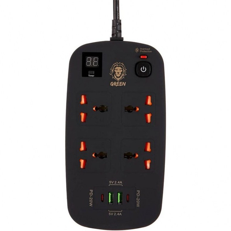 نوع: چندراهی برق و محافظ ولتاژ طول کابل: 3 متر با سه شاخه انگلیسی حداکثر جریان انتقالی: 40 وات جنس بدنه: پلاستیک فشرده نسوز حداکثر توان قابل پشتیبانی: 3500 وات، 13 آمپر دارای 4 درگاه USB و TYPE-C (2 درگاه USB و 2 درگاه TYPE-C ) دارای 4 پریز سه شاخه برق مجهز به محافظ و تایمر از 1 تا 24 ساعت • توان خروجی درگاه تایپ سی PD 20W (USB C PD 20W: 5V/3A 9V/2.22A 12V/1.67Α) • ابعاد محصول: 20.8×11×30 سانتی متر • محافظت از دستگاه ها در برابر نوسانات برق • قابل استفاده برای تمامی دستگاه ها مثل موبایل، لپ تاپ، کنسول بازی و … هاب شارژر و چندراهی برق Green 40W گرین که با یک کابل 3 متری با قابلیت QC3.0 وسیله ی مناسبی برای خانه و محل کار بوده و از تولیدات برند Green میباشد و این محافظ برق در کل میتواند تا 3500 وات جریان برق برساند . این سوئیچ برق با کنترل نوسانات برقی حاصل از قطع و وصل شدن برق محافظ خوبی برای وسیله ی شما است. همچنین در کنار پریز برق دارای چهار درگاه USB 3.0 است که شارژ شدن انواع موبایل و تبلت و دوربین های دیجیتال را با توجه به میزان ولتاژ و جریان دریافتی آنها، برایشان تامین کرده و با کیت کنترل کننده داخل این چند راهی از داغ شدن بیش از حد و گذر جریان بیش از حد برای دستگاه شما جلوگیری می کند و می تواند دستگاه شما را با مدار شارژ سریع خود به صورت فست شارژ، شارژ نماید. چند راهی برق فست شارژ گرین با 4 پریز برق، 2 عدد پورت USB و 2 عدد پورت Type-C با قابلیت پشتیبانی از فناوری شارژ سریع PD 20Wبوده و همچنین دارای 2 عدد پورت Type-C هر یک مجهز به فناوری شارژ سریع PD3.0 با حداکثر توان خروجی 20 وات بصورت جداگانه از هر پورت با مجموع 40 وات میباشد