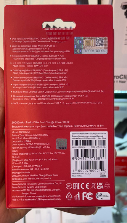 در پاور بانکها دو نوع ظرفیت وجود دارد که ممکن است گاهی باعث گیج شدن خریداران و خرید اشتباه محصول شود. ظرفیت اسمی چیزی است که هر پاور بانک عموما به واسطهی آن شناخته میشود و روی محصول و جعبه هم درج شده است. اما این ظرفیتی نیست که بخواهید بر اساس آن پاوربانک مورد نظر خود را انتخاب کنید. اتلاف انرژی و عوامل دیگر باعث میشود تا ظرفیت واقعی هر پاور بانک، کمتر از ظرفیت اسمی آن باشد. به این ترتیب باید با توجه به نیاز خود و میزان دفعاتی که به شارژ گوشی خود نیاز دارید، محصولی با ظرفیت واقعی مناسب و منطقی انتخاب کنید. ظرفیت اسمی پاور بانک Redmi PB200LZM برابر با 20000 میلی آمپر ساعت و محدودهی ظرفیت واقعی آن بیش از 15000 میلی آمپر ساعت است.