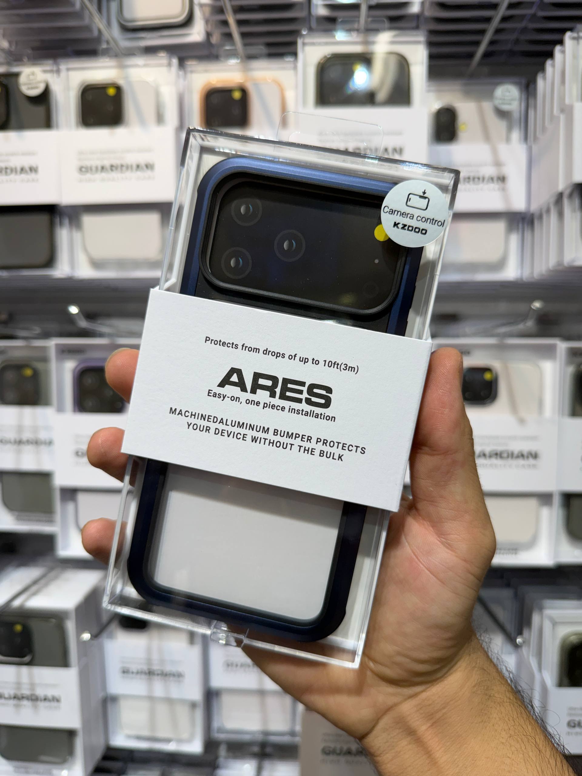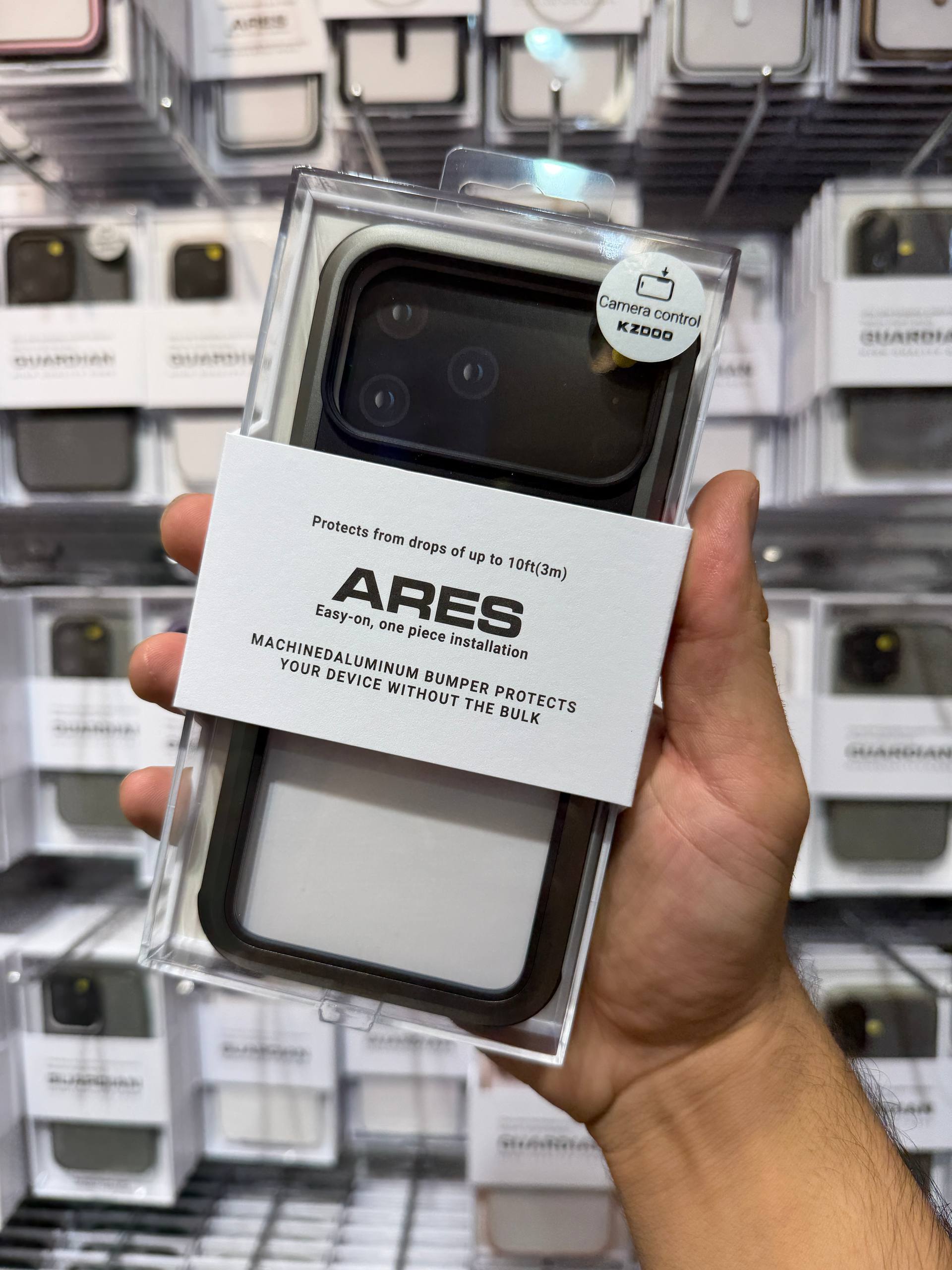 کاور پشت گوشی KZDOO ARES با چهار گوشه تقویتشده و سیستم ضربهگیر هوشمند (Airbag TPU) طراحی شده است تا انرژی ناشی از برخورد را بهصورت یکنواخت پخش کند و از آسیب به بدنه جلوگیری کند. تستهای سقوط تا ارتفاع 3 متر در کارخانه سازنده، عملکرد فوقالعاده این قاب را در حفاظت از گوشی نشان دادهاند. لبههای برجسته اطراف نمایشگر و دوربین نیز هنگام قرار گرفتن گوشی روی سطح صاف، مانع تماس مستقیم آن با سطوح خشن میشوند.