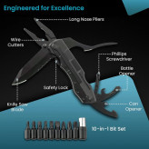 ابزار 10 کاره گرین لاین شما را از حمل جعبه ابزار بی نیاز میکند. این انبردست چندکاره از فولاد ضد زنگ بادوام 420 ساخته شده است و دارای تیغه 3.1 اینچی است که می تواند کارهای سخت را بدون زحمت انجام دهد. با این ابزار میتوانید تقریباً هر چیزی را تعمیر کنید. ابزار های این انبردست چندکاره شامل، یک تیغه چاقو، یک اره، انبر دست دمباریک، یک اهرم مفصلی، یک بطری بازکن، یک قوطی بازکن، ۲ سایز پیچ گوشتی تخت و یک پیچگوشتی چهارسو و یک مجموعه 9 عددی پیچگوشتی استاندارد مگنتی است. با استفاده از این مجموعه ابزار جامع، می توانید با دردسر حمل یک جعبه ابزار بزرگ خداحجنس تیغه