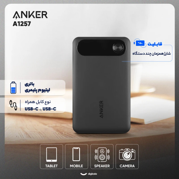پاوربانک انکر مدل A1257 ظرفیت 10000 میلی آمپر ساعت