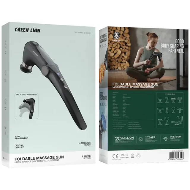 یکی از برجستهترین ویژگیهای ماساژور Green Lion Foldable Massage Gun، طراحی ارگونومیک و تاشوی آن است. دسته بلند و قابل تاشو این دستگاه به کاربر اجازه میدهد بدون فشار آوردن به دست یا شانه، به بخشهای مختلف بدن دسترسی داشته باشد. این طراحی بهخصوص برای ماساژ نواحی سختدسترس مانند پشت، کمر و شانهها بسیار کاربردی است.قابلیت تنظیم زاویه دسته تا ۴۵ درجه، انعطافپذیری بالایی در استفاده ایجاد میکند. کاربر میتواند زاویه مناسب را انتخاب کرده و ماساژ را با وضعیت بدنی راحتتری انجام دهد. این ویژگی باعث میشود حتی در استفاده طولانیمدت، احساس خستگی یا ناراحتی ایجاد نشود.
