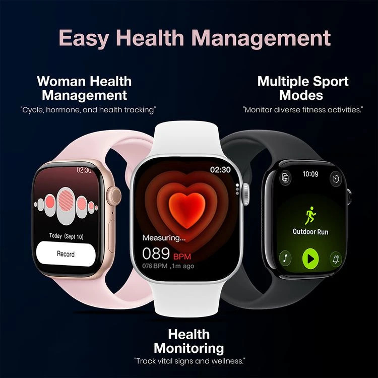 بیش از ۵۰۰ واچ فیس، بازیهای داخلی، حالت نقاشی با AI، ضبط از راه دور، نور فلش، سوابق تماس، Find My Watch، جزیره پویا (Dynamic Island)، عملکرد دوبار ضربه، صفحه بیدار با بالا بردن مچ، پاسخ آنی واتساپ، نمایشگر همیشه روشن