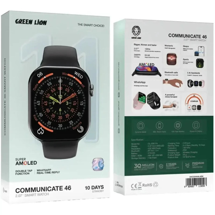 ساعت هوشمند 46 اینچ گرین لاین مدل communicate 46 یک محصول پیشرفته و حرفهای است که با طراحی مدرن و امکانات کاربردی، تجربهای کامل از مدیریت سلامتی، ارتباطات، ورزش و استفاده روزمره ارائه میدهد. این ساعت با ویژگیهای برجستهای همچون صفحه نمایش بزرگ ۲.۰۷ اینچی AMOLED، اتصال پایدار بلوتوث برای تماس و اعلان، باتری ۳۷۵ mAh با شارژ سریع و دوام طولانی، بدنه مقاوم و ضدآب با استاندارد IP68، پایش ضربان قلب، اکسیژن خون و فعالیتهای ورزشی، بیش از ۵۰۰ واچفیس قابل انتخاب و طراحی سبک و ارگونومیک تجربهای حرفهای و لذتبخش برای کاربران فراهم میکند. در ادامه به بررسی مختصر برخی از قابلبت های این ساعت هوشمند و مزایای آن میپردازیم. از جمله قابلیتهای این ساعت هوشمند میتوانیم به سنسورهای سلامتی( پایش ضربان قلب و اکسیژن خون و فعالیتهای ورزشی) بپردازیم. ساعت Communicate 46 امکانات حرفهای پایش سلامت را ارائه میدهد و کاربران میتوانند ضربان قلب، سطح اکسیژن خون و فعالیتهای ورزشی خود را به دقت کنترل کنند. این قابلیتها به کاربران کمک میکند وضعیت جسمانی خود را مدیریت کرده و سبک زندگی سالمتری داشته باشند. پایش دقیق و بهموقع اطلاعات سلامت باعث میشود ساعت فراتر از یک ابزار زمانسنج ساده باشد و به همراهی هوشمند در زندگی روزمره تبدیل شود. از ویژگیهای برجسته این ساعت صفحه نمایش آمولد ۲.۰۷ اینچی،اتصال پایدار بلوتوث برای تماس و اعلان، باتری ۳۷۵ mAh با شارژ سریع و دوام طولانی، بدنه مقاوم و ضدآب با استاندارد IP68، پایش ضربان قلب، اکسیژن خون و فعالیتهای ورزشی، بیش از ۵۰۰ واچفیس قابل انتخاب و طراحی سبک و ارگونومیک نیز میتوان اشاره کرد. همچنین این ساعت امکان مدیریت اعلانها و تماسها با اتصال پایدار بلوتوث را هم برای کاربر فراهم میکند.