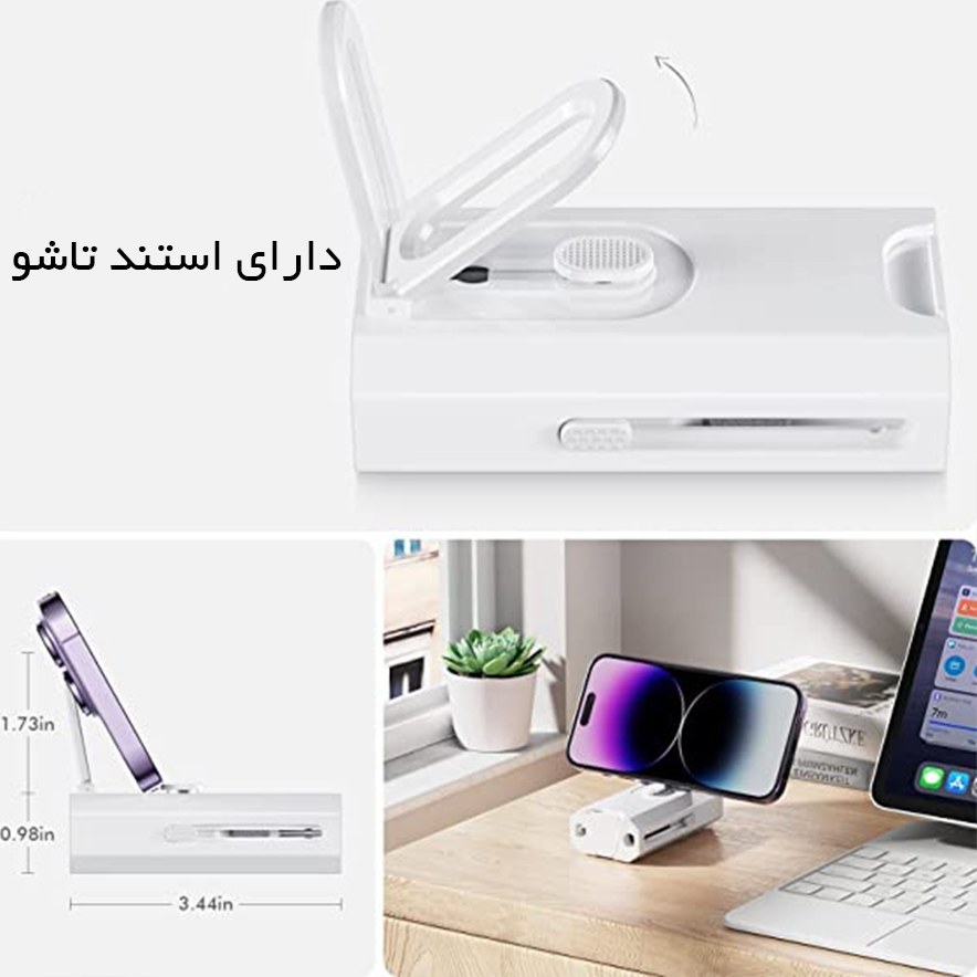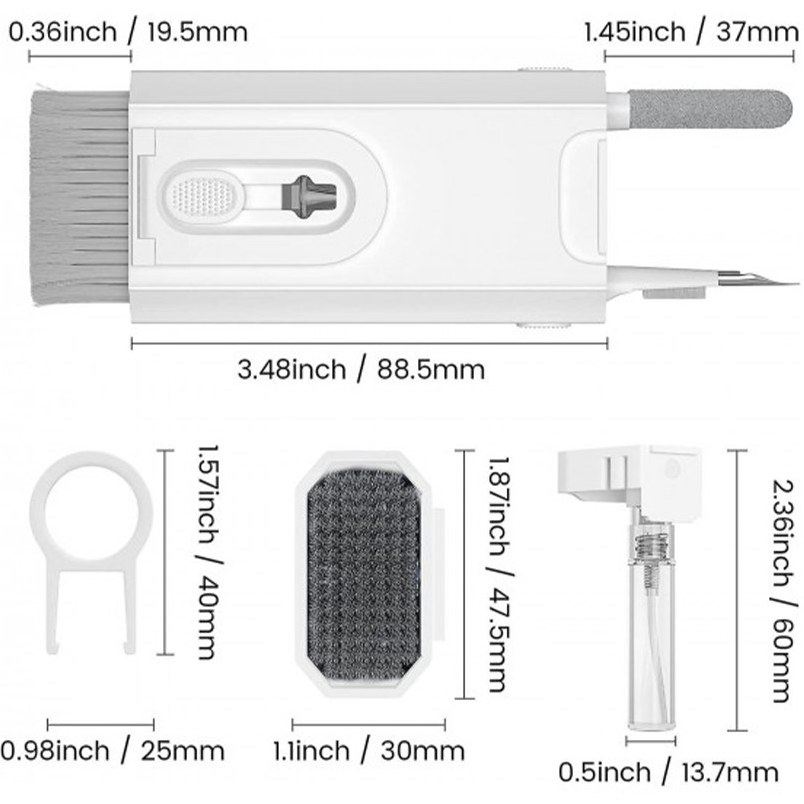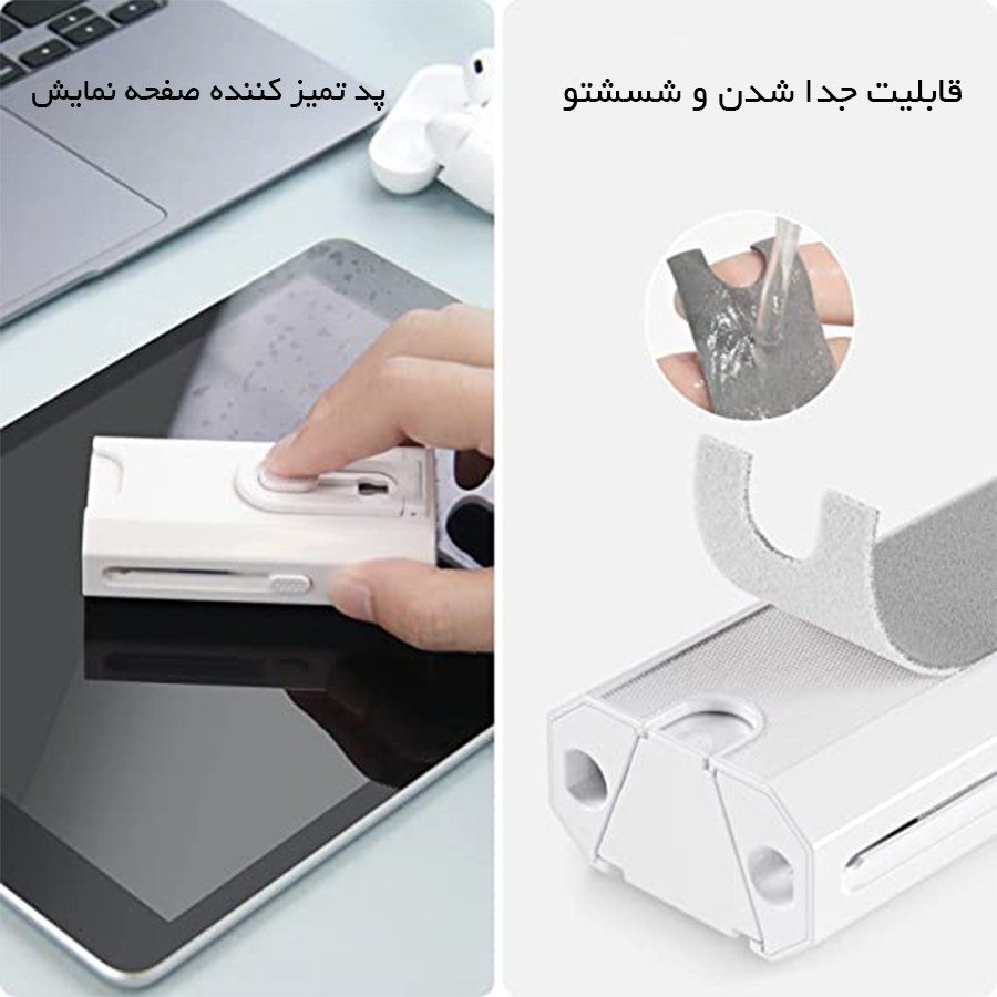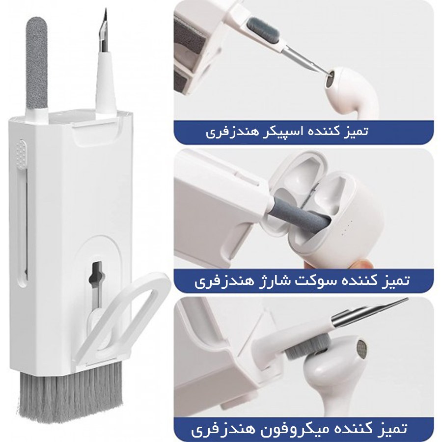 وزن فقط 90 گرم |دارای هلدر موبایل |دارای مینی برس برای تمیز کردن کیبورد |دارای اسپری تمیز کننده |دارای پارچه میکروفیبر |دارای انبر جهت جداسازی قطعات |دارای سه قلم با ابعاد و کارکرد مختلف