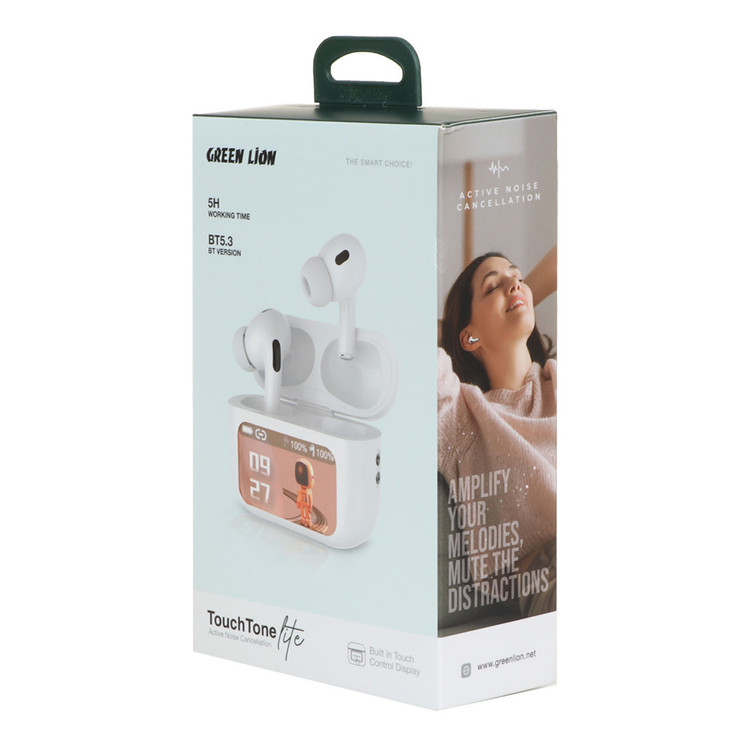ایرپاد green lion touch tone lite برای ارائه کیفیت صدای عالی در رنگ سفید خالص ساخته شده است. با حذف نویز فعال پیشرفته این هدفون، می توانید آزادانه به موسیقی مورد علاقه خود گوش دهید. با یک درایور 13 میلی متری با گشتاور بالا، آن ها محدوده فرکانس گسترده ای از 20 هرتز تا 20 کیلوهرتز از صدای غنی و پویا را ارائه می دهند. فناوری بلوتوث V5.3 در محدوده 25 متری اتصال پایدار را تضمین می کند. از 5 ساعت گوش دادن مداوم با یک بار شارژ یا تا 24 ساعت با جعبه شارژ لذت ببرید.