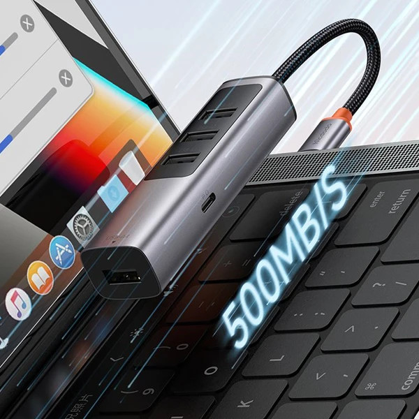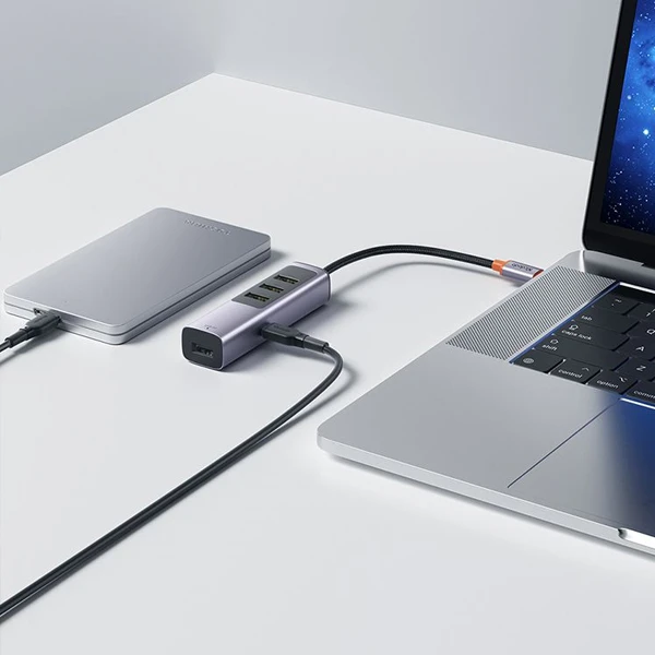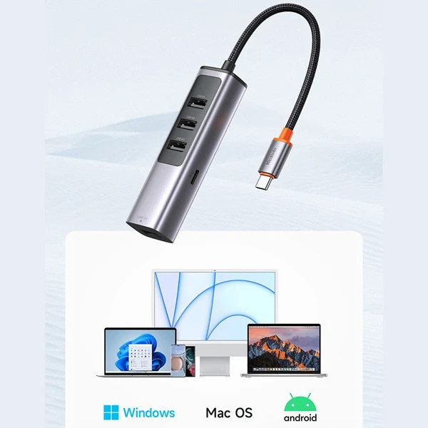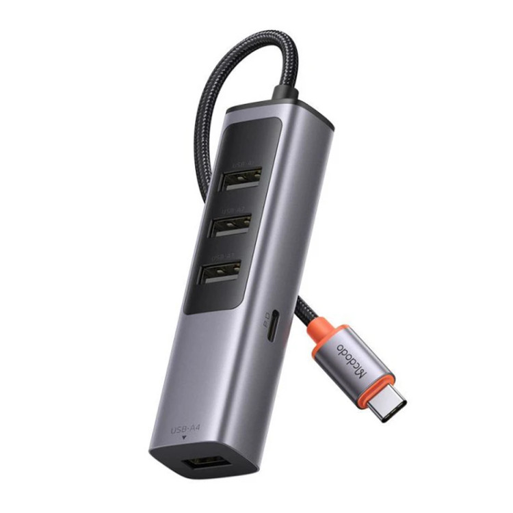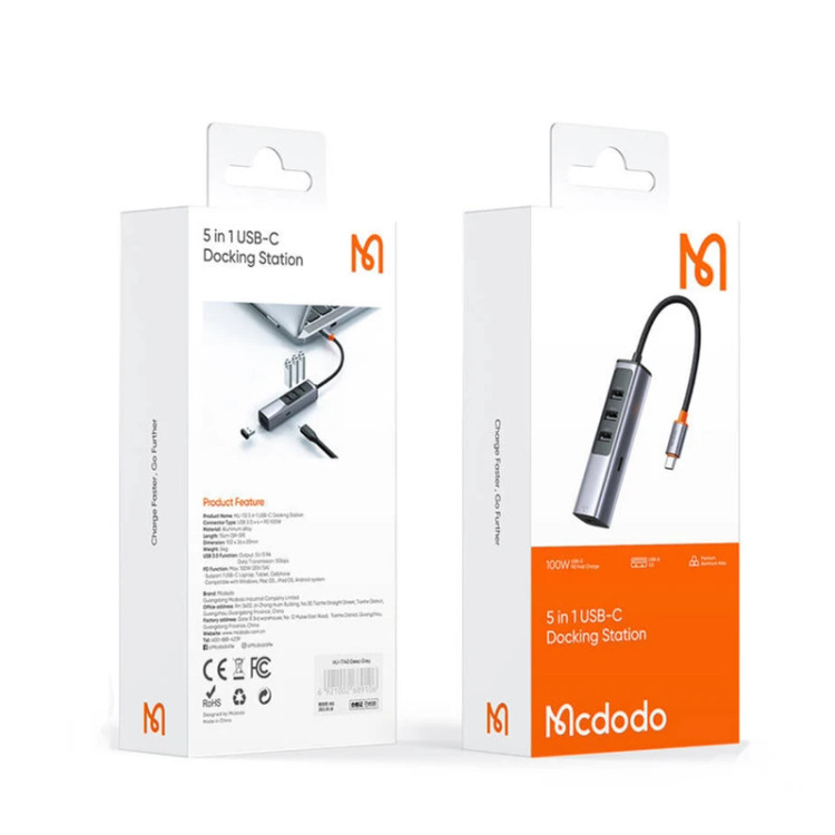هاب 5 پورت Type c مک دودو HU-1120 در مجموع 5 پورت دارد که به شما کمک می کند تا فقط با اشغال کردن یک پورت از لب تاپتان 5 خروجی دریافت کنید و می توانید بدون هیچ محدودیتی از آن استفاده نمایید. این هاب مک دودو به شما 4 پورت USB و یک پورت تایپ سی (Type c) برای انتقال داده ها به کامپیوتر و یا لب تاپ می دهد. علاوه بر آن این هاب دارای قابلیت شارژ سریع است. سرعت انتقال فایل یک گیگ در 3 ثانیه است. هابMcdodo HU-1120 بدون درایو و بدون منبع تغذیه برای هاردیسک موبایل است. همچنین می توانید از آن برای اتصال کیبورد، موس که داری پورت های USB هستند هم استفاده کنید. این هاب دارای یک تراشه مستقل است که این تراشه اطمینان حاصل می کند که چندین عملکرد به طور همزمان فعال شوند و بدون تاخیر دستورات اجرا شوند. جنس بدنه این هاب مک دودو از آلومینیوم ساخته شده و در مقابل اتلاف سریع گرما بسیار مقاوم است. طول کابل این هاب 15 سانتی متر و وزن آن فقط 54 گرم است که می توانید به هر جا آن را به راحتی حمل کنید.