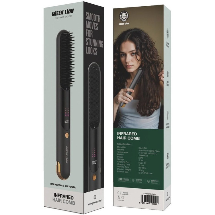 سایر ویژگی ها: رس حرارتی صاف کننده مو گرین لاین مدل INFRARED ظرفیت باتری 2600 میلی آمپر ساعت مدت زمان شارژ کامل 3 ساعت پورت شارژ TYPE C. نمایشگر دیجیتال زمان کار 50 دقیقه